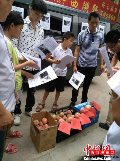 陳國西“贈(zèng)桃尋妻”的舉動(dòng)引來不少路人幫忙散發(fā)尋人啟事。韓章云 攝