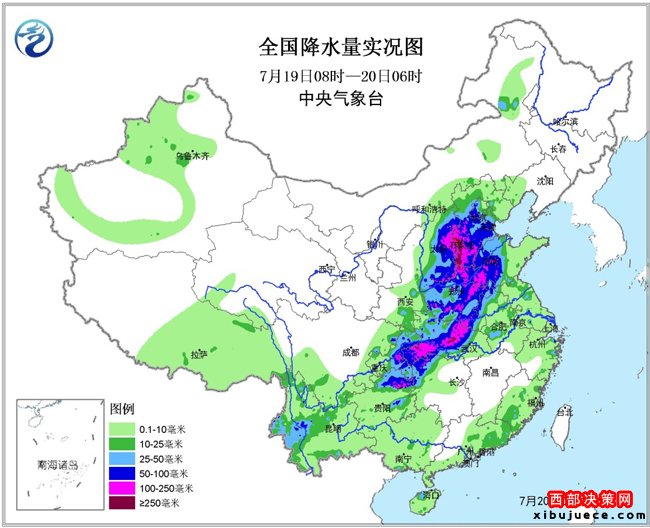 19日,華北、黃淮、江漢等地出現(xiàn)大范圍強(qiáng)降雨,50毫米以上的暴雨面積達(dá)63.5萬平方公里,其中河北南部、河南北部、湖北中部和西部等地出現(xiàn)250毫米以上的特大暴雨,山西、河北、湖北的17個縣市日降雨量突破歷史極值。中央氣象臺今晨繼續(xù)發(fā)布暴雨橙色預(yù)警,預(yù)計(jì)北京、天津、河北中東部、遼寧中南部等地仍將有暴雨或大暴雨天氣。