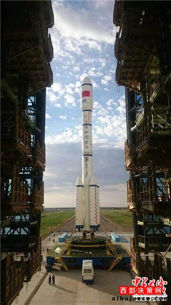 圖為長征二號F T2運載火箭與天宮二號空間實驗室的垂直轉(zhuǎn)運。