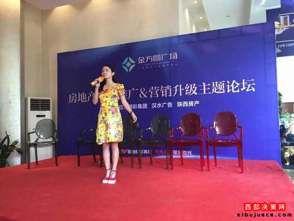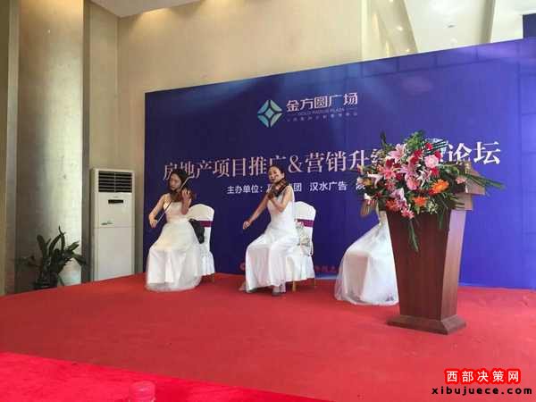 由陜西麗彩實業(yè)集團、陜西漢水廣告文化傳媒有限公司、《陜西房產(chǎn)》共同主辦的“房地產(chǎn)項目推廣與營銷升級主題論壇”,于2016年9月8日下午在咸陽金方圓廣場項目營銷中心圓滿舉辦。論壇第一輪嘉賓對話結(jié)束后,主辦單位邀請了華陰老腔藝術團成員、華陰籍姑娘屈玄登臺獻歌。(見下圖)