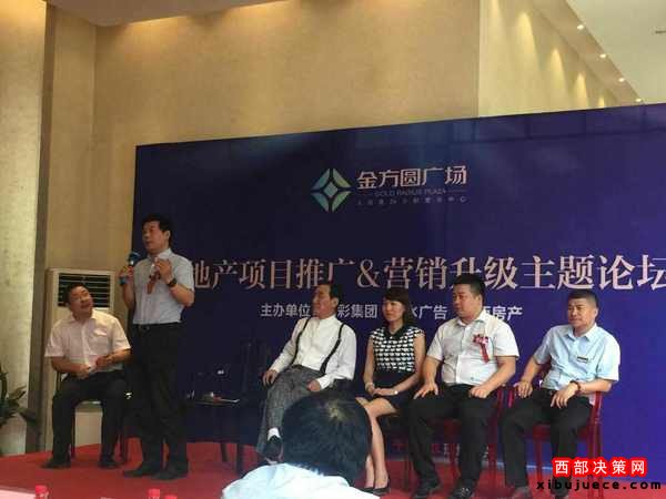 由陜西麗彩實業(yè)集團、陜西漢水廣告文化傳媒有限公司、《陜西房產(chǎn)》共同主辦的“房地產(chǎn)項目推廣與營銷升級主題論壇”,于2016年9月8日下午在咸陽金方圓廣場項目營銷中心圓滿舉辦。出席論壇第一輪主題對話的嘉賓有:陜西麗彩實業(yè)集團金方圓廣場項目營銷中心營銷總監(jiān)陳娟女士、咸陽萬隆家居博覽中心總經(jīng)理陳琪先生、科教網(wǎng)創(chuàng)始人李偉偉先生、陜西宏泰稅務師事務所所長楊俊岑先生、陜西馬氏集團董事長馬勝利先生。據(jù)陳娟女士介紹:金方圓廣場位于人民路七廠十字西側(cè),總建筑面積45萬平米,總體布局共分為5層商業(yè)(局部6層)、24層精裝修小戶型公寓、20層寫字樓、星級酒店,疊拼、多層洋房,高層住宅,停車位3127個,還包括幼兒園、會所等相關社區(qū)配套。 金方圓廣場位于咸陽中心區(qū)的核心地帶,處于不可復制的區(qū)域,有著不可復制的發(fā)展前景。全面引入一站式消費理念,建成后,將是集商業(yè)、辦公、精裝公寓、酒店、娛樂、住宅為一體的咸陽繁華地段的城市綜合體,是咸陽商業(yè)的地標式建筑。金方圓廣場以45萬平米商業(yè)綜合體完美嵌入,將繁榮鼎盛、時尚經(jīng)典統(tǒng)領于一身,堪稱城市精神的扛鼎之作,比肩世界的國際綜合體,為俯視世界的人,尋找一種至高的角度?。ㄒ娤聢D)