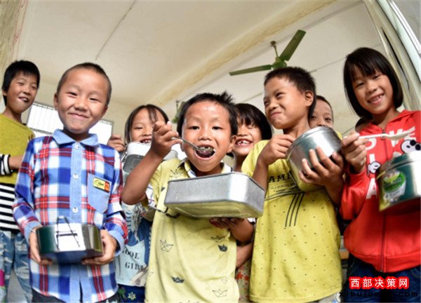 10月10日,在廣西大化瑤族自治縣七百弄鄉(xiāng)弄雄小學(xué),同學(xué)們?cè)诔誀I養(yǎng)餐。