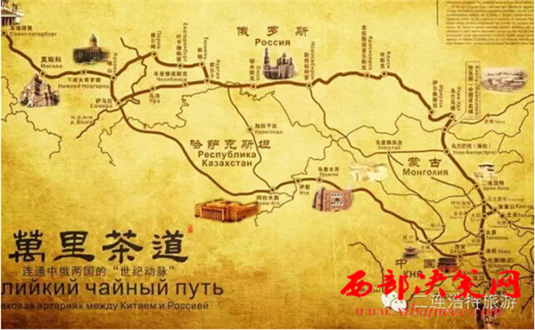 萬里茶道是歐亞大陸上始于18世紀(jì)初并延續(xù)約兩個半世紀(jì)的一條重要國際商道,從福建武夷山市起,途經(jīng)江西、湖南、湖北、河南、山西、河北、內(nèi)蒙古等7省區(qū),經(jīng)庫倫(現(xiàn)蒙古國首都烏蘭巴托)到達(dá)中俄邊境的通商口岸恰克圖,全程約4760公里。茶道在俄羅斯境內(nèi)繼續(xù)延伸,再傳入中亞和歐洲其他國家,使茶葉之路延長到13000公里之多,成為名符其實的“萬里茶道”。