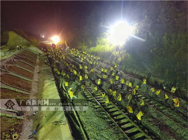 黎湛鐵路電氣化改造工程貴港(根竹)至玉林段施工現(xiàn)場。