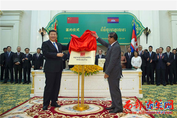 會談后,兩國領(lǐng)導(dǎo)人共同見證了外交、共建“一帶一路”、產(chǎn)能合作、投資、水利、新聞、海洋等領(lǐng)域多項雙邊合作文件的簽署,并共同出席金邊中國文化中心揭牌儀式。