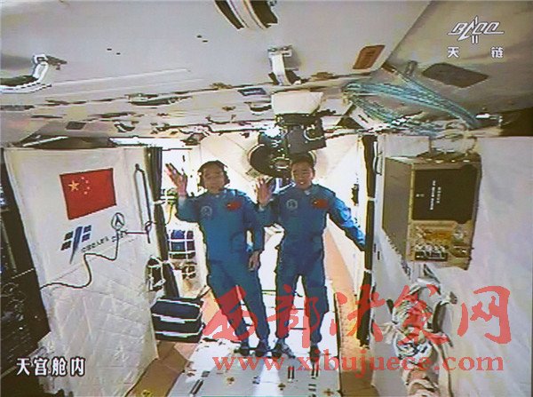 10月19日,神舟十一號(hào)航天員景海鵬和陳冬順利進(jìn)入天宮二號(hào)實(shí)驗(yàn)艙。景海鵬(左)和陳冬在天宮二號(hào)實(shí)驗(yàn)艙向全國人民問好并敬禮(攝于北京航天飛行控制中心大屏幕)。
