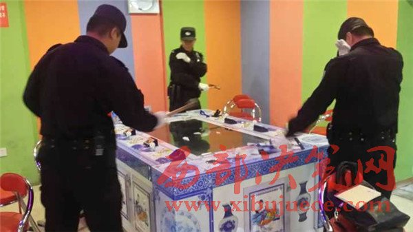 16時(shí)整,城關(guān)公安分局治安管理一大隊(duì)的警員沖進(jìn)幻影游藝城,當(dāng)場(chǎng)控制各類參賭人員30余人、賭博管理人員十余人,查獲各類熊貓機(jī)、釣魚機(jī)、單挑機(jī)等涉賭機(jī)器72臺(tái),繳獲賭資現(xiàn)金近五萬(wàn)元。警員在履行執(zhí)法手續(xù)后,對(duì)72臺(tái)涉賭機(jī)器進(jìn)行現(xiàn)場(chǎng)銷毀,執(zhí)法有序進(jìn)行,未損壞其他無(wú)關(guān)設(shè)備設(shè)施。