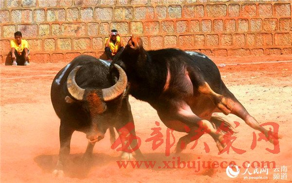 比賽當(dāng)天,吸引了石林周邊十里八鄉(xiāng)的4000余名觀眾前來“觀戰(zhàn)”。賽場上,《西班牙斗牛士進(jìn)行曲》旋律緊湊,一場場精彩刺激的“戰(zhàn)斗”此起彼伏,斗挑、追逐、角力……讓人想起歷史悠久的西班牙斗牛。與西班牙斗牛不同的是,西班牙斗牛重在人和牛之間的比拼,而石林斗??吹氖桥Ec牛之間的比拼。“一般人看斗牛是看熱鬧,而實(shí)際上斗牛主要是看它們不到最后一口氣絕不放棄的拼搏過程。”石林縣政協(xié)副主席劉琴龍說,這也代表了石林人民的拼搏精神。