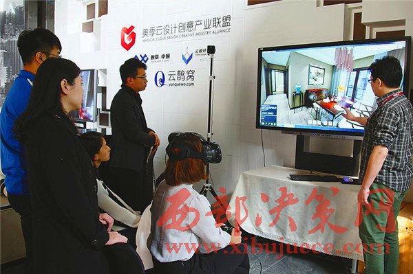 圖為參觀者正身臨其境感受家裝的效果