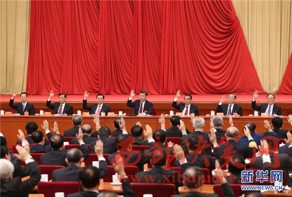 中國共產(chǎn)黨第十八屆中央委員會(huì)第六次全體會(huì)議,于2016年10月24日至27日在北京舉行。這是習(xí)近平、李克強(qiáng)、張德江、俞正聲、劉云山、王岐山、張高麗等在主席臺(tái)上。新華社記者 李學(xué)仁 攝