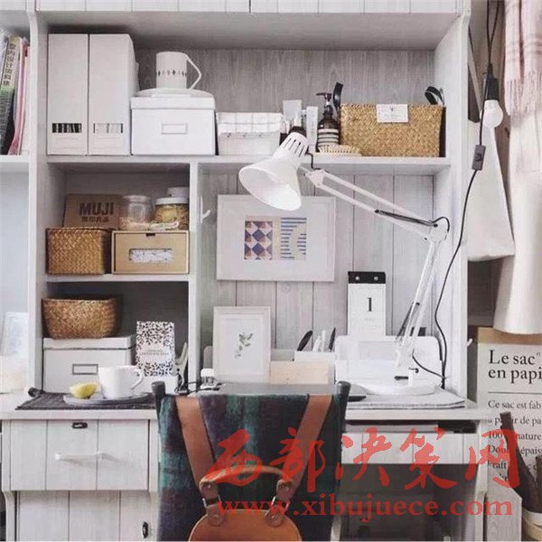 Stefny將原來和書桌同排的臉盆架移至與門同排,扯了塊布將臉盆架遮起來了,以防顏色不一的臉盆破壞美觀,同時在書桌和臉盆架之間騰出了一塊掛衣空間。