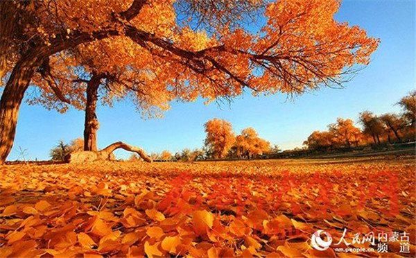 國慶小長假,內(nèi)蒙古一片秋色,這也是金色大漠胡楊林最炫麗的綻放時刻。2016中國·額濟納大漠胡楊節(jié)引爆國慶歡樂游——內(nèi)蒙古阿拉善盟額濟納旗,這座人口不足3萬的旗幾天內(nèi)接待游客超過20萬人。金色胡楊和湛藍天空交相輝映,構(gòu)成美不勝收的絕色畫卷,被游客們盛贊為“中國最美的秋色”之一。
