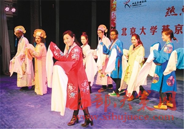 臺下就座的,則是一群特殊的學(xué)生——北京大學(xué)燕京學(xué)堂的來自42個(gè)國家和地區(qū)的學(xué)生們,他們把易俗社小劇場坐得滿滿當(dāng)當(dāng)。在英語翻譯的配合下,秦腔這種中國非物質(zhì)文化遺產(chǎn)的精髓被一點(diǎn)點(diǎn)輸入他們的腦海。