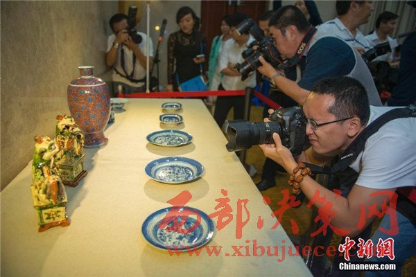 11月23日,“海外文物入藏國家南海博物館”新聞發(fā)布會在海口舉行,十件在海外漂泊數(shù)百年的珍貴陶瓷文物,經(jīng)兩家國內(nèi)企業(yè)在紐約佳士得拍賣會上成功拍下后,無償捐獻給國家南海博物館。圖為入藏中國國家南海博物館的海外文物。