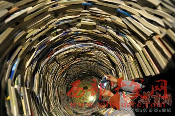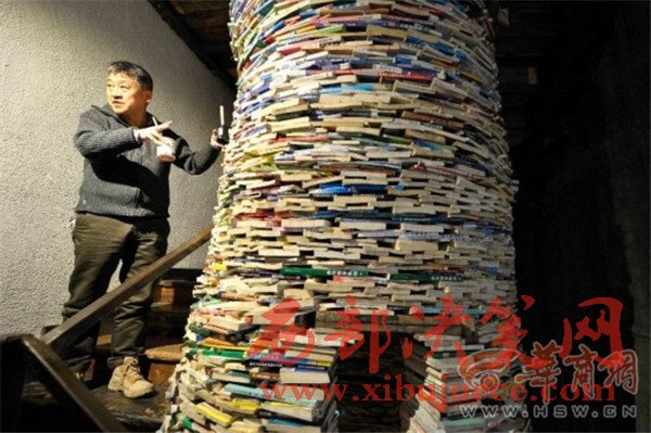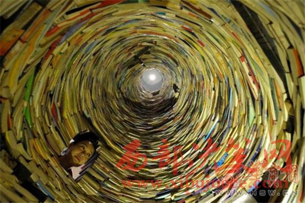 西安陪讀媽媽用4噸教輔書壘出7.5米高"書井"