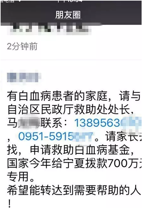 3日開始,該微信在多個朋友圈中刷屏,還公布了工作人員的手機(jī),當(dāng)天,多個網(wǎng)友撥打該手機(jī)申請或詢問是否能申請救助白血病基金。“剛開始還一頭霧水,后來看到了同事轉(zhuǎn)發(fā)給我的朋友圈截圖,才明白過來。”