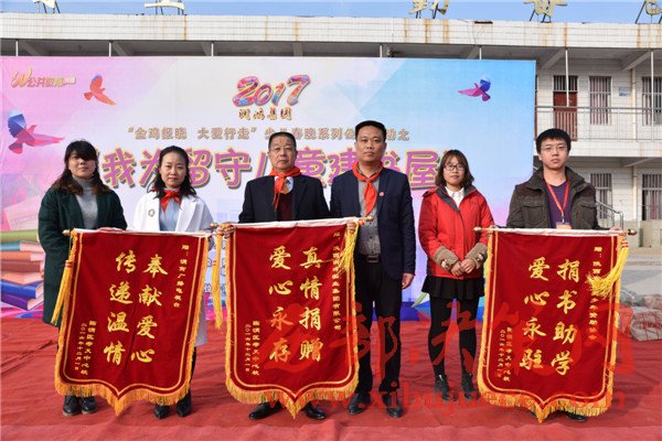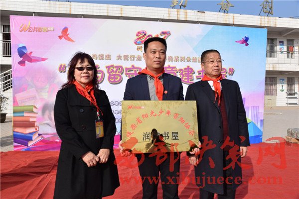 陜西省陽光少年資助協會顧問王余、會長王鳳英、秘書長溫向林、理事馬強、副會長張弘強、李江、辦公室主任王芷熹、會員代表王潤梅等;愛心人士河南電視臺睛彩中原欄目記者張文興、陜西源邦實業(yè)集團王源、劉楊等愛心團前往參加,為孩子們帶去愛心人士捐贈的一批課內外書籍,并建成“潤鴻書屋”,藏書六百余本。此外,還為該校多名建檔立卡的貧困家庭學生送去書包、文具、手套、圍巾等學習生活用品。