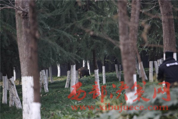 12月7日,安徽合肥,體重近200斤的成年野豬,出現(xiàn)在合肥市包河區(qū)政府大樓院內(nèi),民警兩次鳴槍,合肥市動(dòng)物園工作人員吹了3針麻醉,“二師兄”愣是不倒。下午15時(shí),包河區(qū)行政中心車來(lái)車往,前來(lái)辦事的群眾擠滿大廳,很多人并不知道,一只野豬就在附近溜達(dá)。“區(qū)政協(xié)一位女領(lǐng)導(dǎo)最先看到,上午7點(diǎn)多,就在國(guó)稅局后邊的綠化帶里頭。我也看到了,拿東西攆,它就往西頭跑。跟同事們說(shuō),都不相信我,講區(qū)政府怎么可能出現(xiàn)野豬。”物業(yè)師傅一臉認(rèn)真,恨不得用手在空中畫(huà)出野豬的模樣,“我是農(nóng)村過(guò)來(lái)的,那就是野豬,嘴巴又尖又長(zhǎng)的嘛。”上午等保安們反映過(guò)來(lái),野豬已經(jīng)不知所蹤,大家便不了了之。結(jié)果下午1時(shí)許,大家伙又出現(xiàn)了。“先在綠化帶里曬太陽(yáng),被我們趕到包河區(qū)檢察院院子里,接著又跑到區(qū)政府東邊的綠化帶里。”