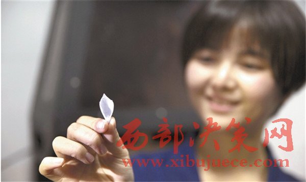 經(jīng)過(guò)這不均勻的“日光浴”后,黃麗媚把玻璃中間的材料拿出來(lái),之前的液體已經(jīng)變成一張扁平的薄膜。