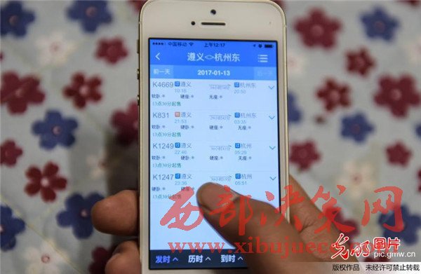 2016年12月15日,一名貴州省余慶縣市民通過手機客戶端購買春運首日的車票。