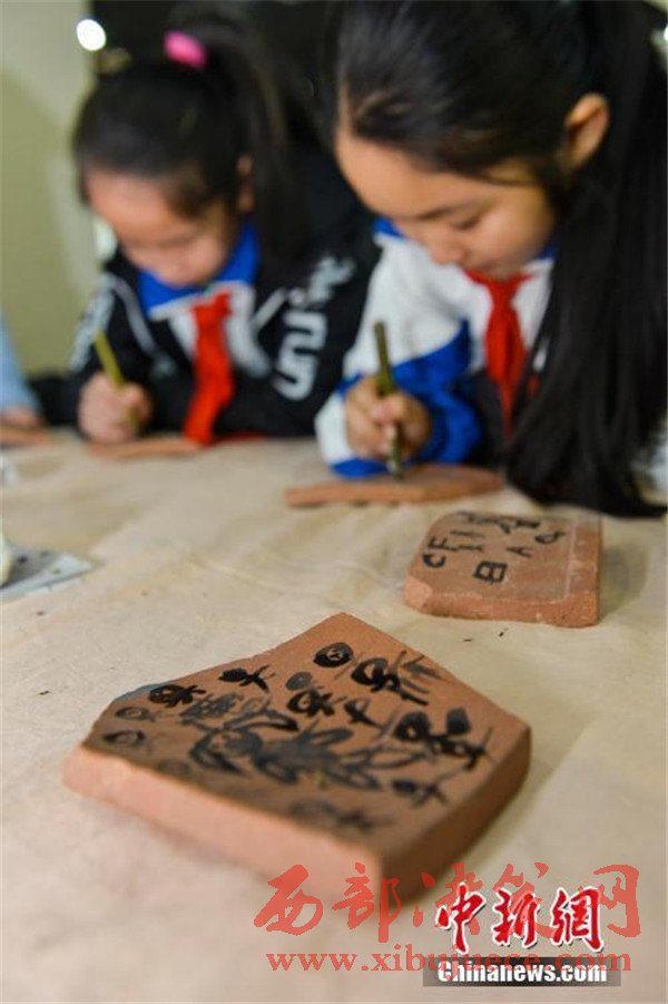 原標(biāo)題:半坡遺址文物新疆展出 小學(xué)生繪制陶器體驗(yàn)歷史