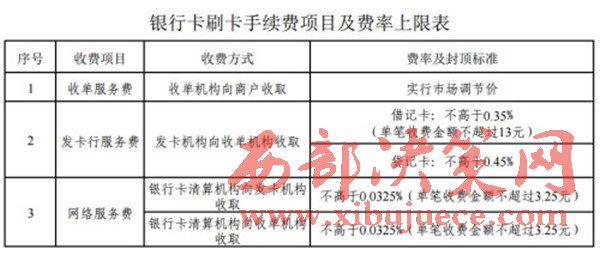 銀行卡刷卡手續(xù)費項目及費率上限表。來自發(fā)改委網站。