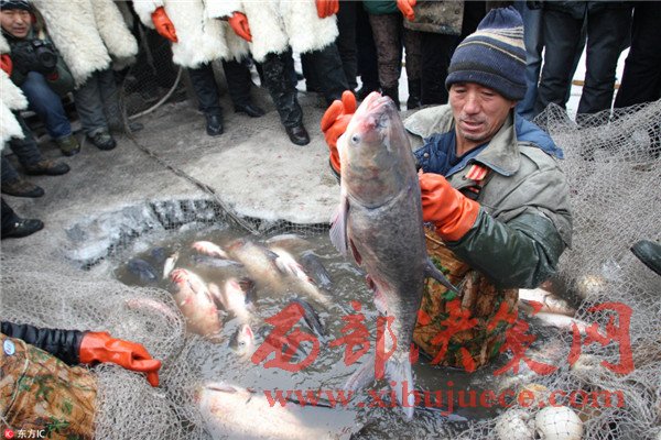 2016年12月25日,哈爾濱市長嶺湖舉行第三屆冬捕冬釣旅游節(jié)?,F(xiàn)場,漁民鑿開冰封的湖面,首網(wǎng)撈起萬余斤鮮魚,吸引了許多市民和游客前來觀看。冰面上支起大鍋,現(xiàn)場熬制鮮魚湯供人們品嘗。