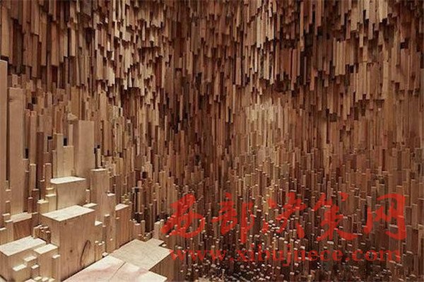 空心這個交互式裝置是藝術(shù)家Katie Paterson和建筑家Zeller & Moye的作品。該作品由10000多塊跨越百萬年的木材制成。它們被切成木板,之后雕成鐘乳石的形狀,掛在天花板上,為參觀者聽過獨特的,步行參觀體驗。