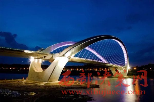 白沙大橋采用獨(dú)塔雙孔120米斜拉橋橋型,橋長2604米,猶如一條巨龍臥在邕江之上橋身安裝的1000多套各種景觀燈將光線直射邕江水面,營造出“橋水合一”如同仙境般的美景。