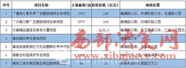 資料顯示,大漁片區(qū)位于滇池東岸,面積25平方公里,約37500畝。根據(jù)昆明滇池旅游度假區(qū)信息,大漁片區(qū)2016年共7個項目統(tǒng)一招商,總占地面積9997.7畝,總投資額預(yù)計約353.6億元。意味著本次大批量招商項目供地所占土地比例幾近于大漁片區(qū)總面積的三分之一,如此大規(guī)模的土地供應(yīng)量和投資額,如果最終招商仍然無果,那么大漁片區(qū)大量土地“待嫁”的現(xiàn)狀暫時難以改變。