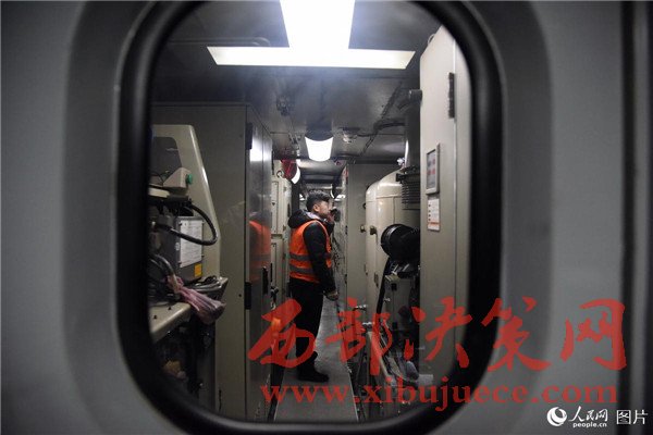2017年2月3日,司機(jī)趙力強(qiáng)對(duì)火車頭機(jī)械間進(jìn)行巡檢。