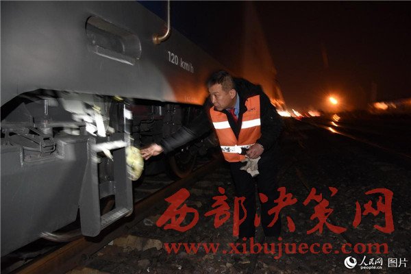 2017年2月3日,司機(jī)孫日峰檢查機(jī)車走行部。