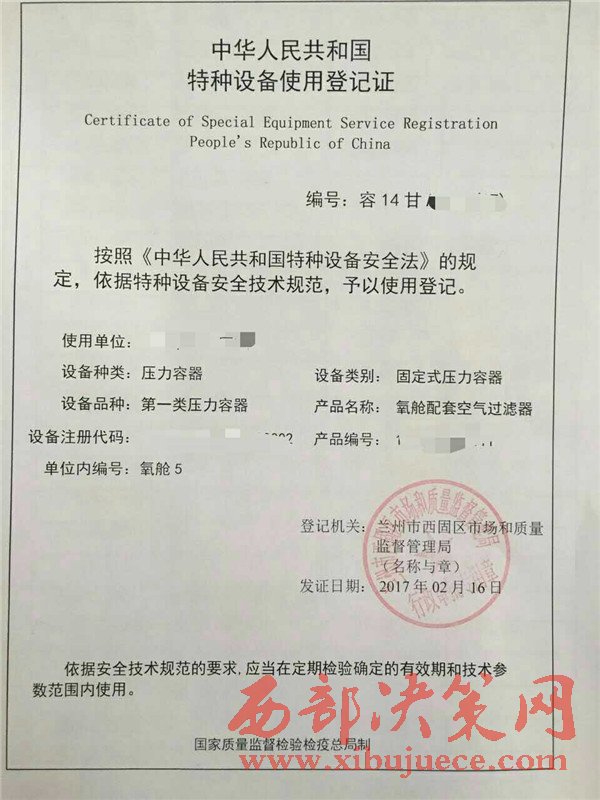 蘭州市西固區(qū)首套特種設(shè)備使用證書(shū)順利發(fā)放