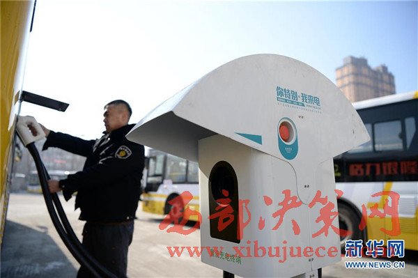 3月2日,一名公交車駕駛員在使用充電樁對公交車進行充電。