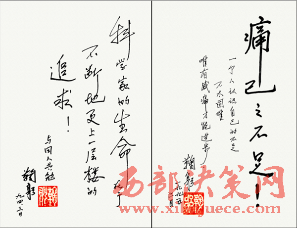 鞠躬院士在自己自傳中寫道:我對自己的評論是無偉業(yè),點燃一支燭光而已??部部揽酪簧F(xiàn)在蠟炬已幾乎成灰了。愿我國早日成為培養(yǎng)諾貝爾獲得者的土壤,愿我們世世代代青出于藍勝于藍。