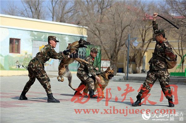 “佳虎,咬……”3月21日,內(nèi)蒙古公安邊防總隊二連邊防檢查站警犬分隊正在組織警犬進行撲咬訓練,只見警犬“佳虎”在訓導員的指揮下,瞬間將“目標嫌疑人”撲倒,幾秒鐘就將“敵人”制服。