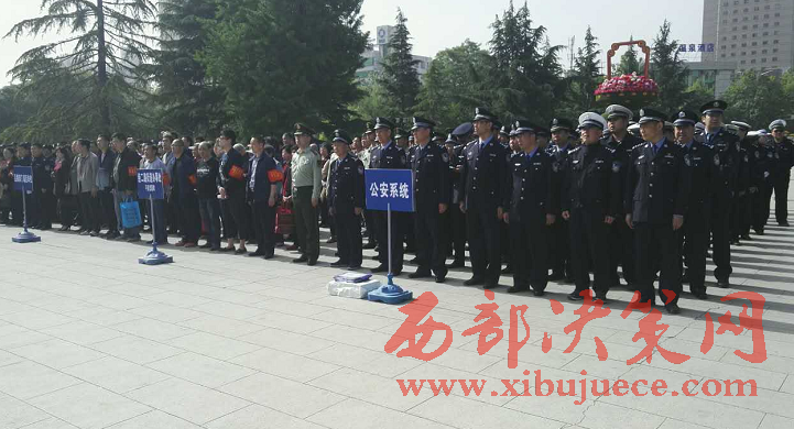 西部決策網(wǎng)-西部大開發(fā)訊(帥華鋒 杜杰)5月6日上午,渭濱區(qū)在炎帝園廣場隆重舉行打造“經(jīng)二路平安示范一條街” 夏季攻堅行動推進會,市委政法委及區(qū)委、區(qū)人大、區(qū)政府、區(qū)政協(xié)相關(guān)領(lǐng)導出席現(xiàn)場,公安、執(zhí)法、區(qū)級部門、平安單位、社區(qū)志愿者組成五個方陣共300余人參加會議。