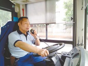 “以前報站經(jīng)常是扯著嗓子喊,每天嗓子都要‘冒煙’?,F(xiàn)在有公交車自動播報系統(tǒng),我就拿著話筒喊。”劉師傅說,他現(xiàn)在每天開車跑3趟,每趟至少要喝一個8磅水壺裝的水,至少上一次廁所。