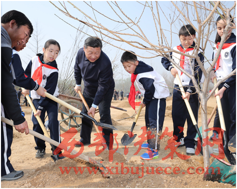 揮鍬鏟土填入樹坑,培實(shí)新土堆起圍堰,陽(yáng)春三月里,習(xí)近平總書記在北京市朝陽(yáng)區(qū)將臺(tái)鄉(xiāng)接連種下了一顆顆樹苗……