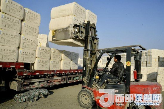 11月30日,工作人員將皮棉裝車(chē)準(zhǔn)備外運(yùn)。新華社發(fā)(杜炳勛 攝)