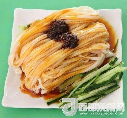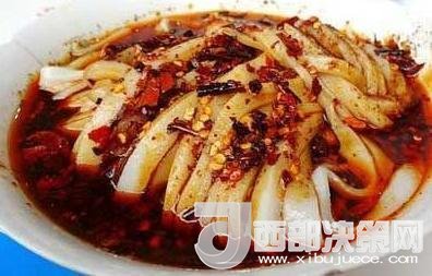 面皮與菜豆腐是漢中人最喜歡的早餐。將大米浸泡、磨漿,加水調(diào)制,蒸成薄片,待冷卻后切成細(xì)條。面皮色白,具有嫩、細(xì)、柔、韌、香等特點(diǎn)。輔以豆芽、菠菜、胡蘿卜絲、芝麻醬、辣椒油、大蒜汁或生姜汁,芥茉、五香粉、精鹽等調(diào)料,涼拌后紅綠相映、黃白互襯、色澤鮮亮,食之爽口,氣味芳香,風(fēng)味獨(dú)特。