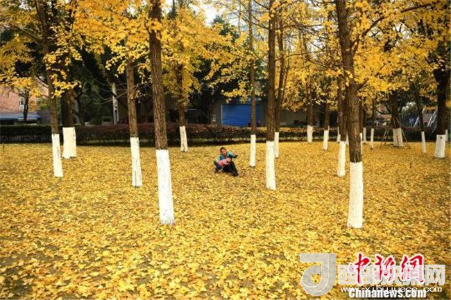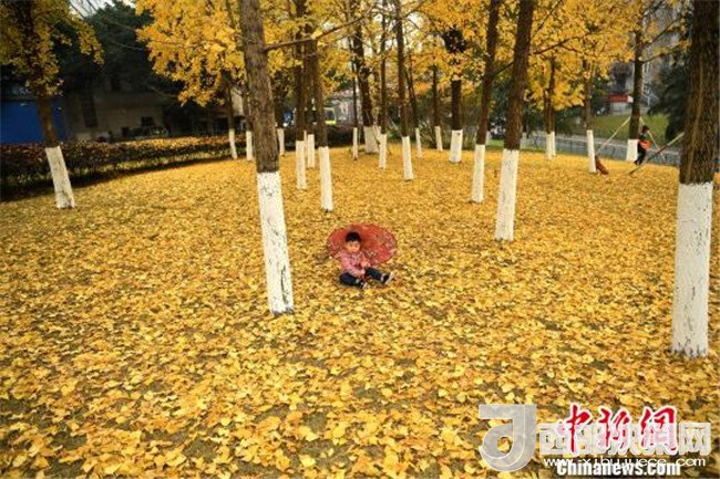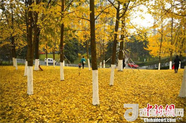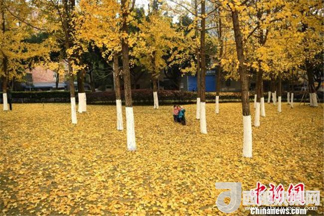 12月18日,重慶街邊的銀杏樹進入掉葉季,大樹底下鋪滿了一層層金燦燦的銀杏葉,吸引了不少市民前來拍照留念。