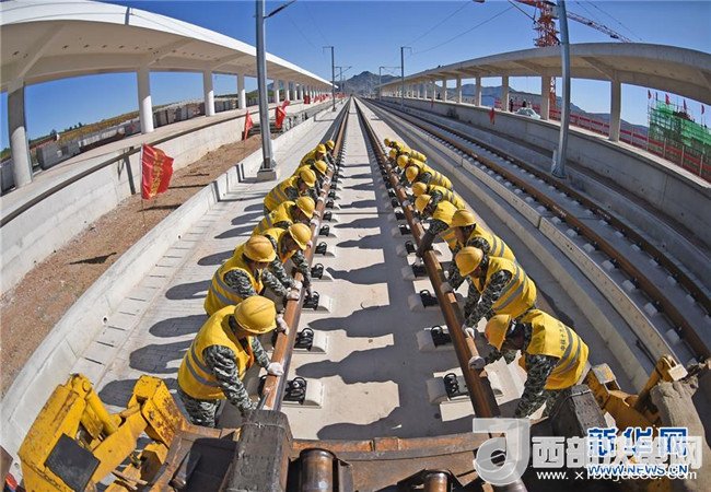 中鐵十九局工程人員在京沈高鐵凌源南站進(jìn)行鋪軌作業(yè)(9月28日攝)。京沈高鐵起自北京星火站,經(jīng)河北省承德市、遼寧省朝陽市、阜新市接入沈陽站,線路全長698公里,設(shè)計(jì)時(shí)速350公里。
