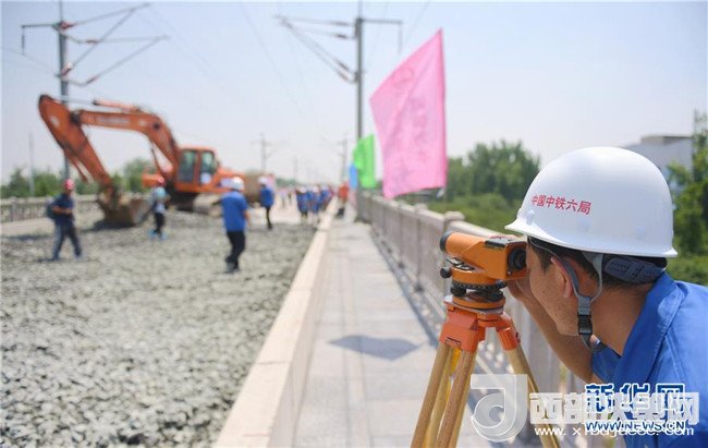 石濟(jì)客專引入石家莊樞紐工程的建設(shè)人員在進(jìn)行測量作業(yè)(6月15日攝)。這一工程預(yù)計(jì)今年12月底全線通車,建成后石家莊至濟(jì)南乘坐高鐵只需90分鐘左右。