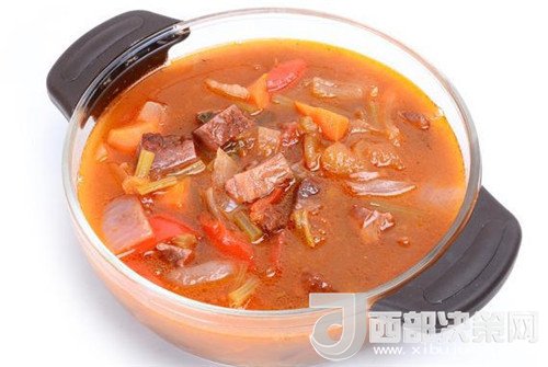 4.2個(gè)小時(shí)后,加少許鹽調(diào)味,再將切塊的番茄放入,再煮15分鐘即成。