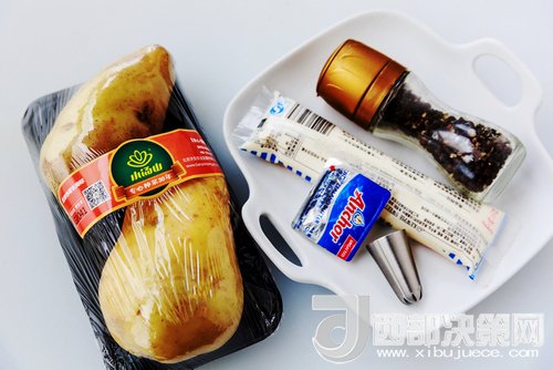 食材:土豆、濃縮雞汁、黃油、藍(lán)莓醬、黑胡椒。