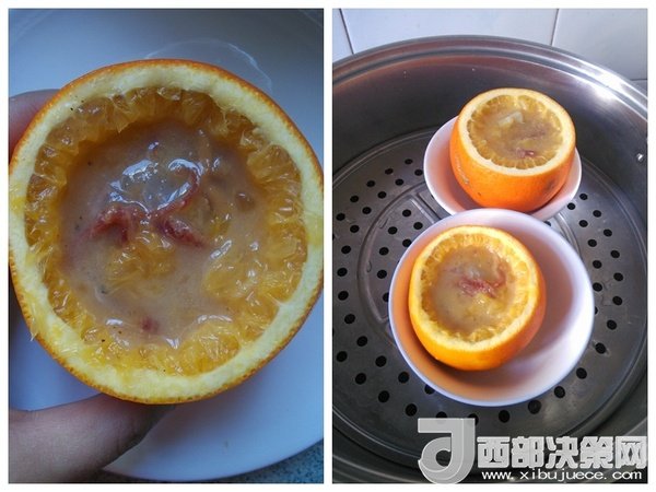 原料:龍利魚、橙子、火腿、雞蛋、料酒、食鹽、雞粉、胡椒。