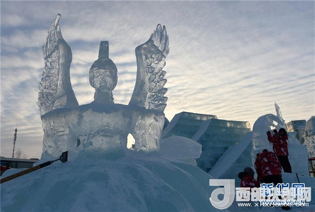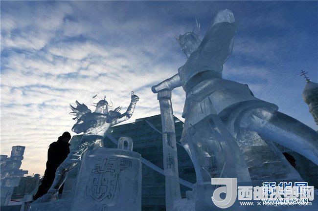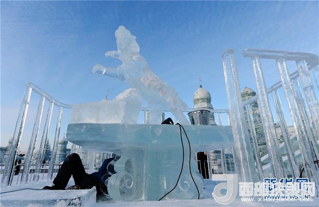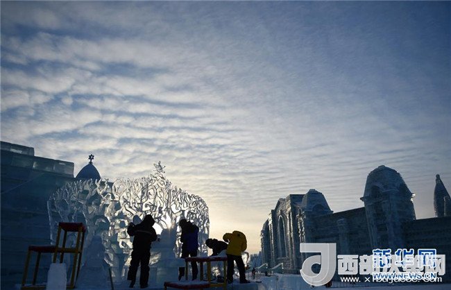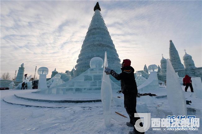 1月3日,在哈爾濱冰雪大世界園區(qū),冰雕選手在進(jìn)行創(chuàng)作。當(dāng)日,在哈爾濱冰雪大世界園區(qū)內(nèi)舉行的國際組合冰冰雕比賽進(jìn)入第四天。經(jīng)過來自世界各地的冰雕選手悉心雕琢,一塊塊冰出落成精美的藝術(shù)作品,仿佛晶瑩剔透的出“冰”芙蓉。(記者 王建威 攝)