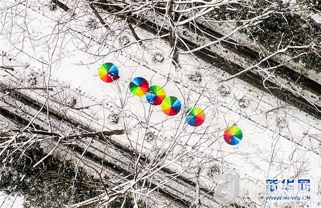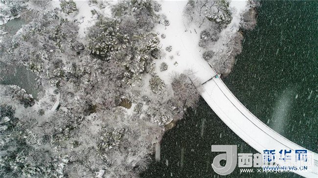 1月4日拍攝的合肥市翡翠湖公園雪景。 當日,安徽省合肥市迎來2018年首場降雪。(記者 郭晨 攝)