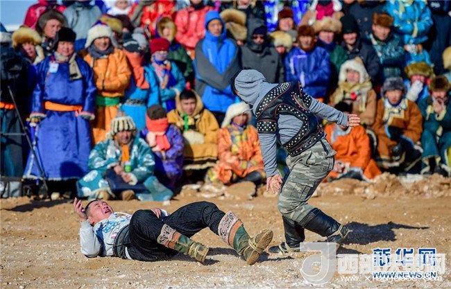 1月9日,兩名搏克手在進(jìn)行搏克比賽。記者 連振 攝